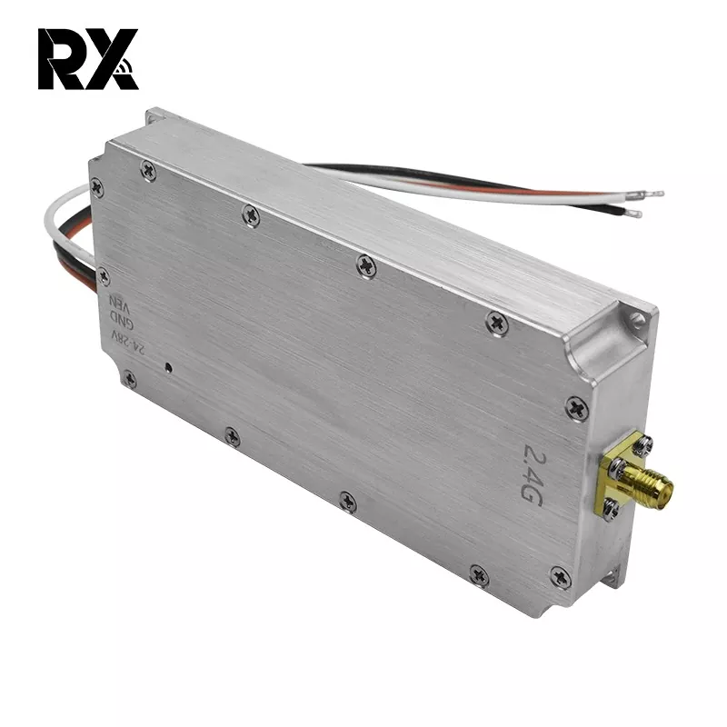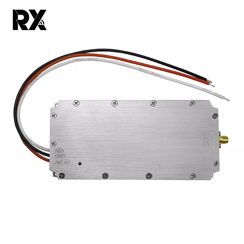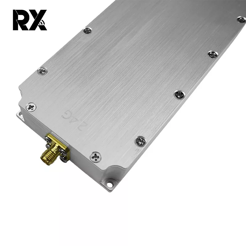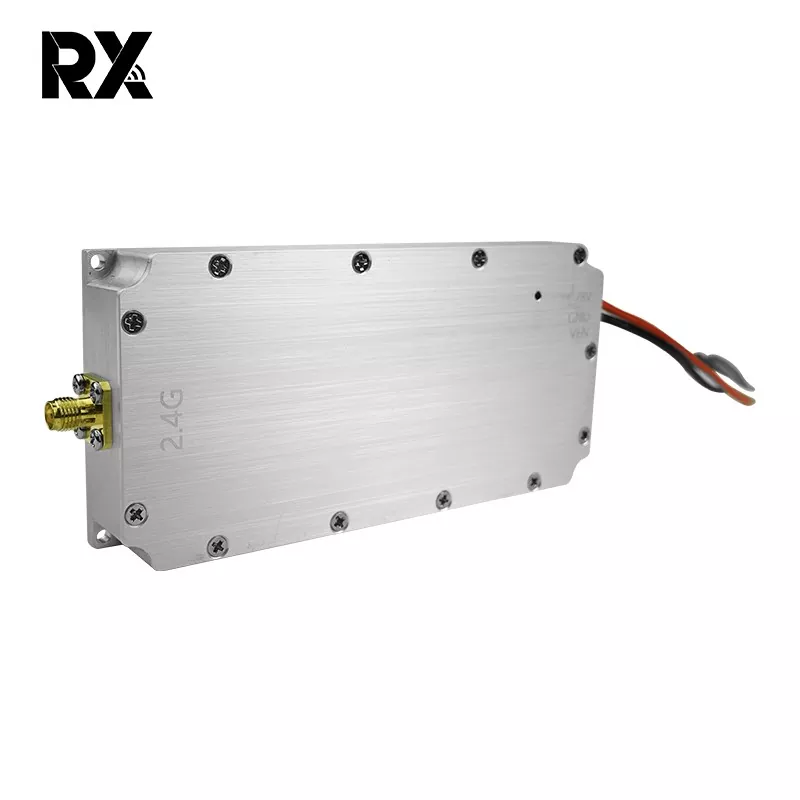 Is féidir leis an modúl jammer comhartha 2.4G 50W seo a dhíoltar te le haghaidh drone, a bhfuil aschur cumhachta 50W aige, comharthaí RF láidir a ghiniúint. Ag clúdach an raon minicíochta 2400 - 2485 MHz, a úsáidtear go coitianta ag drones le haghaidh cumarsáide, rialaithe, comharthaí iargúlta, tarchur íomhá, agus feidhmeanna satailíte, cuireann a aschur cumhachtach 50W ar chumas na gcomharthaí jamming comharthaí dlisteanacha drones a shárú. Dá bhrí sin, cuireann sé isteach go héifeachtach ar ghnáthoibriú na drones, rud a chuireann bac orthu feidhmiú mar a bhí beartaithe.