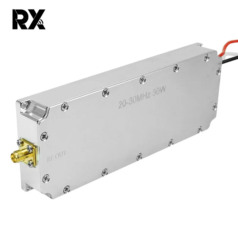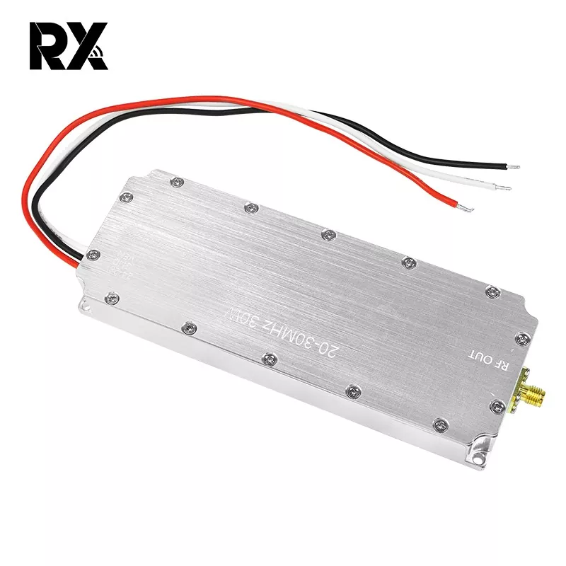 Tá comhéadan SMA, le cumhacht aschuir 30W, agus banna minicíochta oibriúcháin a chlúdaíonn 20-30MHz ag an modúl nua deartha seo 30W SMA Connector Drone jammer 20-30MHz. Tá cáilíocht na modúl a tháirgtear ag RX ráthaithe, agus cuireann a bhfeidhmíocht den scoth agus éifeacht mhaith úsáide tóir orthu i measc na gcustaiméirí. Tá sé deartha go sonrach le haghaidh rialú drone i gcásanna sonracha. Ní hamháin go ndéanann an dearadh nuálaíoch seo a struchtúr níos oiriúnaí do riachtanais phraiticiúla suiteála, ach déanann sé feidhmíocht jamming a bharrfheabhsú.