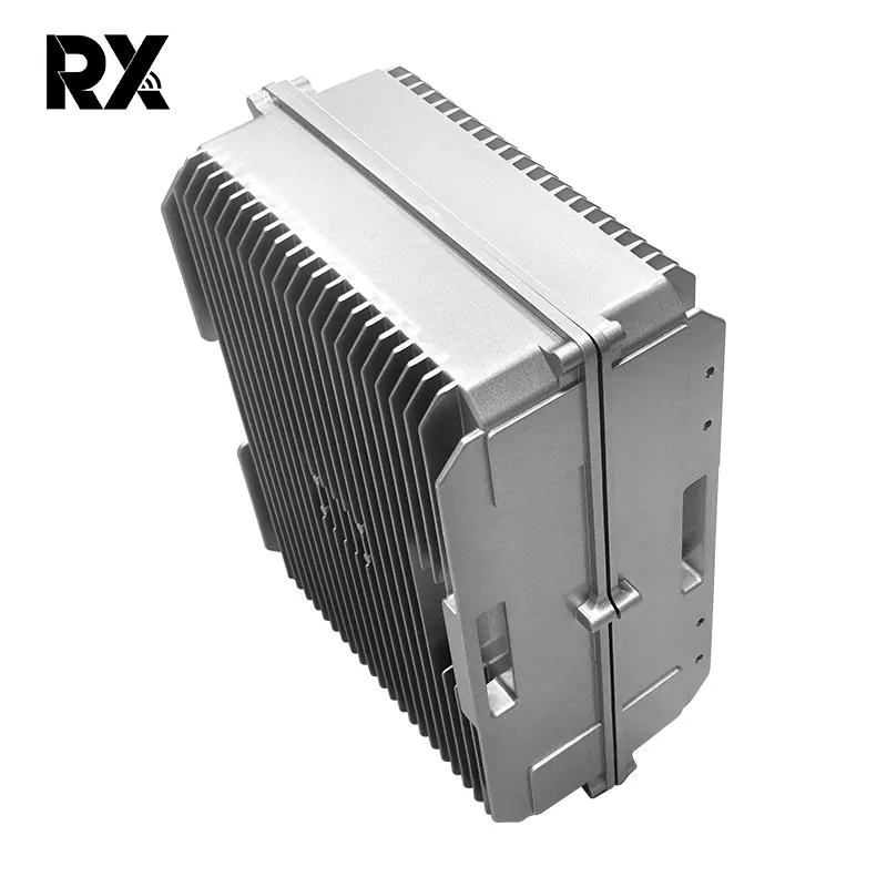 Tá an Cás Alúmanam seo déanta as cóimhiotal alúmanaim ard-ghrád, a thairgeann cóimheas neart - go - meáchain den scoth. Cás Alúmanam Ultra-Uiscedhíonach Do Chomhartha Jammer atá deartha go sonrach le haghaidh jammers comhartha 50W, úsáideann an tithíocht eití doirteal teasa limistéar mór agus struchtúr duct aeir inmheánach optamaithe. Nuair a ghineann an jammer comhartha go leor teasa ag ardchumhachta, aistríonn an tithíocht cóimhiotal alúmanaim an teas go tapa chuig eití an doirteal teasa lena seoltacht theirmeach den scoth.